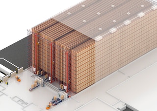 Instalacija AS/RS sustava visoke gustoće sa sustavom Pallet Shuttle posebno je prikladna u slučajevima koji zahtijevaju značajno povećanje produktivnosti i, prema tome, potrebu za premještanjem velikog broja paleta po satu.