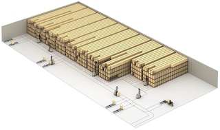 S ovim rješenjem za skladištenje, viličari su zamijenjeni visokoregalnim dizalicama ili transportnim vozilima, koja prevoze motorizirani šatl i teret u svojim postoljima. Šatl se umeće u skladišne kanale, stavljajući svaku paletu u najdublji dostupni položaj. Sve se to radi izvršavanjem naloga koje generira sustav za upravljanje skladištem Easy WMS.