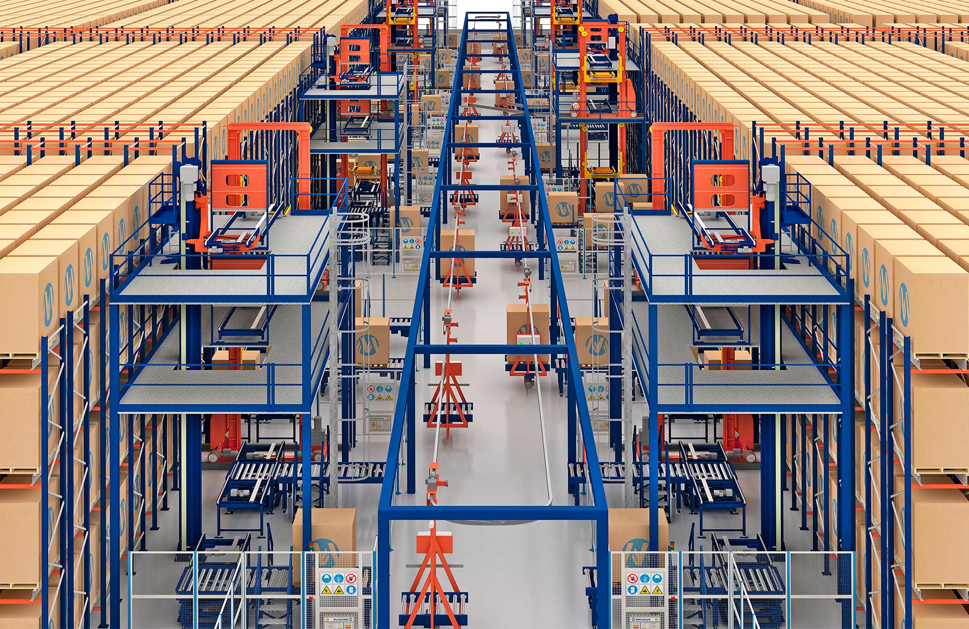 Električni jednotračni sustav tvrtke Mecalux opremljen je nizom sigurnosnih uređaja i mehanizama. Oni sprječavaju sudare između kolica i omogućuju nesmetano kretanje duž cijelog kruga.