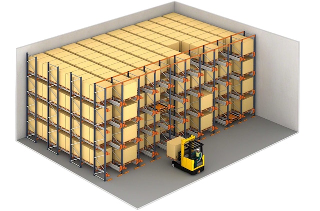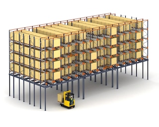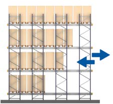 Kompaktni skladišni sustav u kojem se šatl na električni pogon kreće po tračnicama unutar skladišnih kanala, zamjenjujući viličare, znatno skraćujući radno vrijeme i omogućujući grupiranje predmeta po kanalima, umjesto po cijelim prolazima.