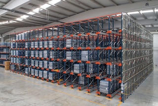 Mecalux dizajnira i proizvodi sve sastavne dijelove kompaktnog skladišnog sustava Pallet Shuttle, uključujući specifičnu strukturu regala kako bi se osiguralo optimalno kretanje šatla, kao i same šatlove.