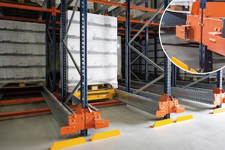 - I regali i šatlovi imaju ugrađene sigurnosne značajke posebno dizajnirane da osiguraju ispravan rad sustava Pallet Shuttle: krajnji graničnici tračnica, centralizatori paleta, senzori položaja itd.