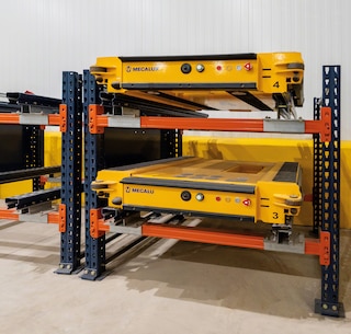 Prema definiciji iz rječnika, šatl je vozilo koje putuje tamo-amo između fiksnih točaka u čestim intervalima. Mecaluxov Pallet Shuttle savršeno odgovara ovom opisu, s rutom u ovom slučaju od P&D postaje regala do prvog slobodnog prostora u skladišnom kanalu (ili obrnutim putem, ako se vrši istovar).