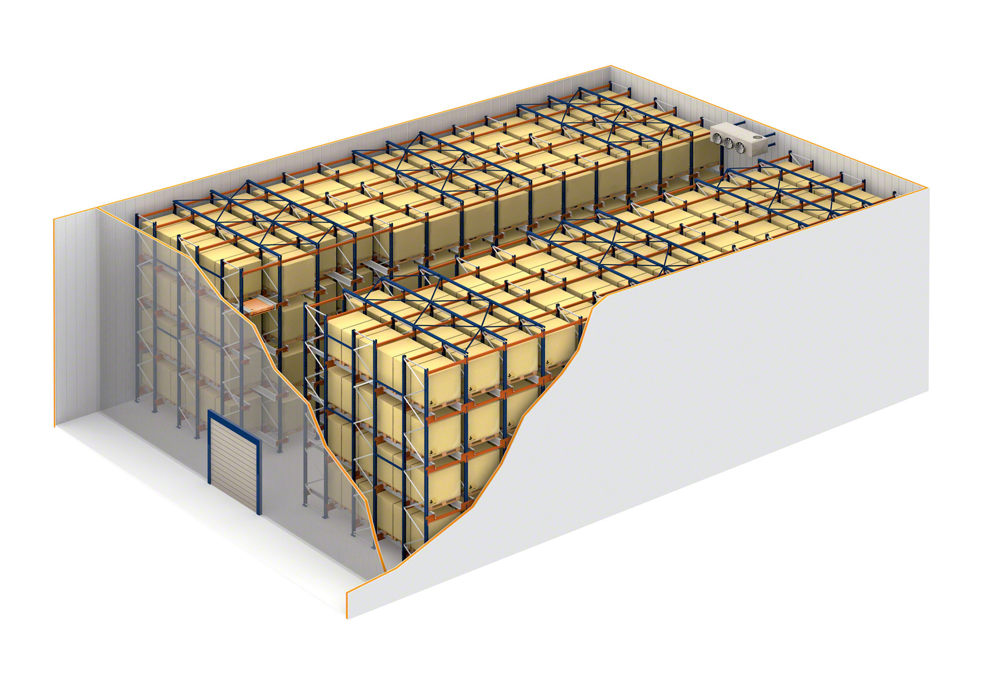 - Sustav radi s minimalnim razmacima između razina, što omogućuje skladištenje visoke gustoće.