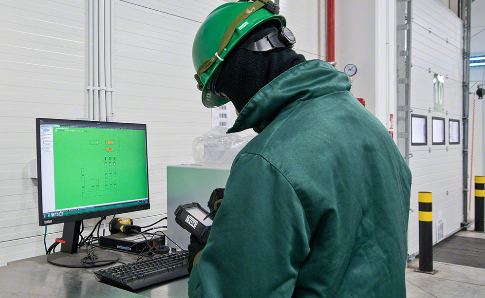 Transporteri prevoze paletizirane proizvode do skladišnog prostora. Kada tamo stignu, prolaze kroz kontrolnu točku, gdje se provjeravaju njihove karakteristike i usklađenost s nekoliko utvrđenih i potrebnih parametara (uglavnom težina i veličina). Naknadno, sustav za upravljanje skladištem (WMS) određuje hoće li se roba skladištiti u dijelu za rashlađivanje ili za zamrzavanje, dodjeljujući joj lokaciju.