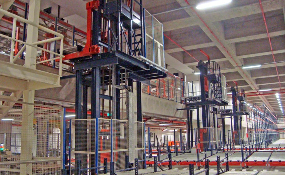 Opslužuje ga 15 visokoregalnih dizalica, koje postavljaju robu na jednostruke i dvostruke regale, koji se protežu cijelom visinom 24 razine skladišta. Visokoregalne dizalice imaju zajednički kapacitet od 480 kombiniranih ciklusa.