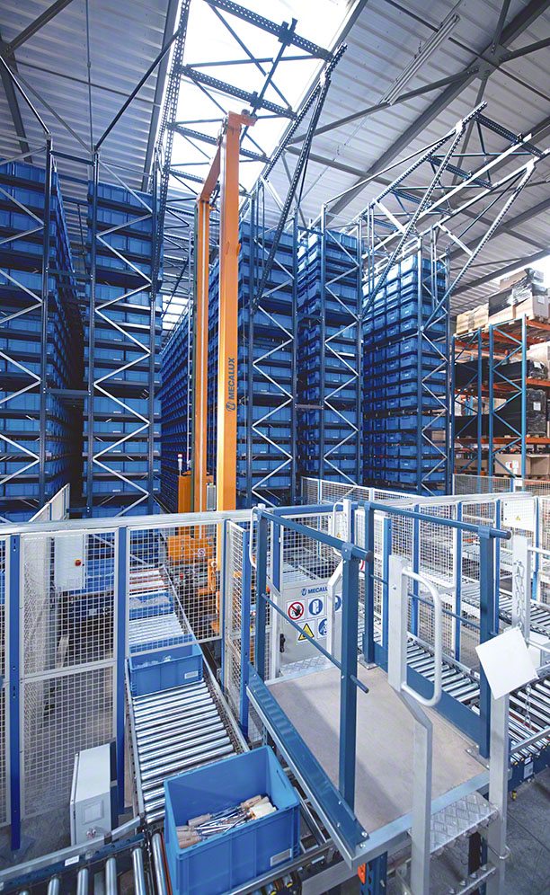 Paletni regali visoki su 8 m i imaju skladišni kapacitet za 6030 paleta. Dizajniran za smještaj tereta različitih veličina, težina i oblika, ovaj regal se upotrebljava za glomazne proizvode kao što su kolica za alat. U međuvremenu, automatizirano skladište za kutije može pohraniti 80 % SKU-ova tvrtke SAM Outillage.