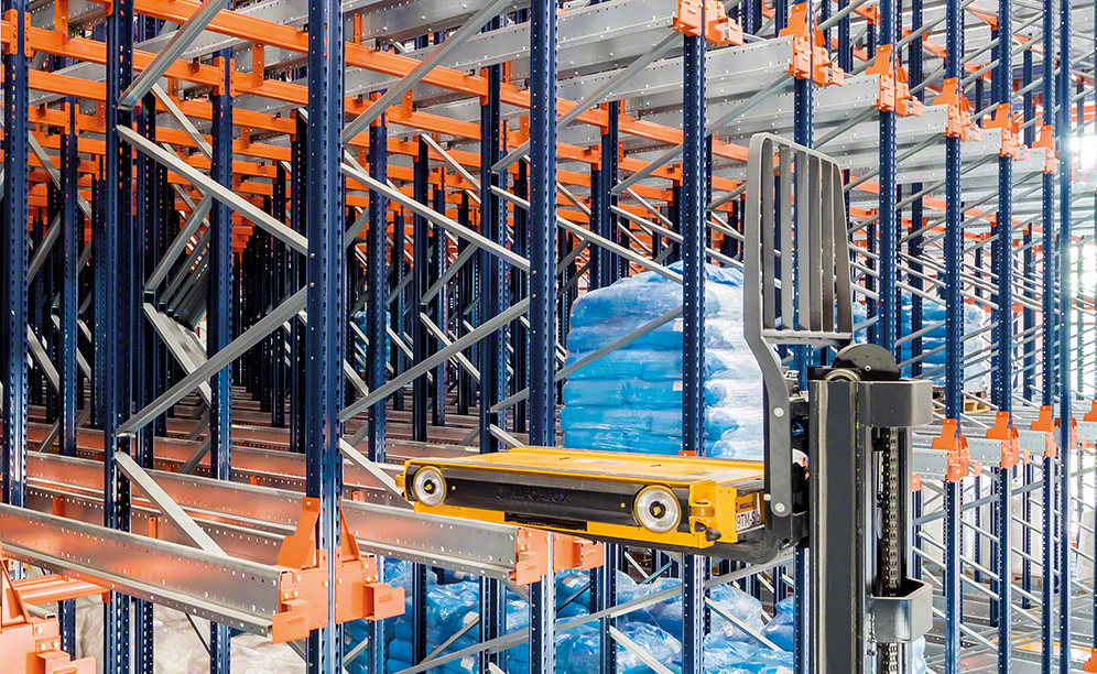 Skladište ima pet sustava Pallet Shuttle za upravljanje volumenom kretanja svakog dana. Uzduž jedne strane skladišta postavljeni su paletni regali visine 14 m s po šest etaža. One djeluju kao međuspremnik, tj. do 303 palete se drže na čekanju, čekajući da ih Pallet Shuttle odloži u regale.